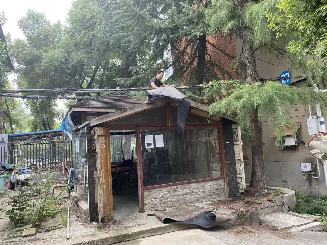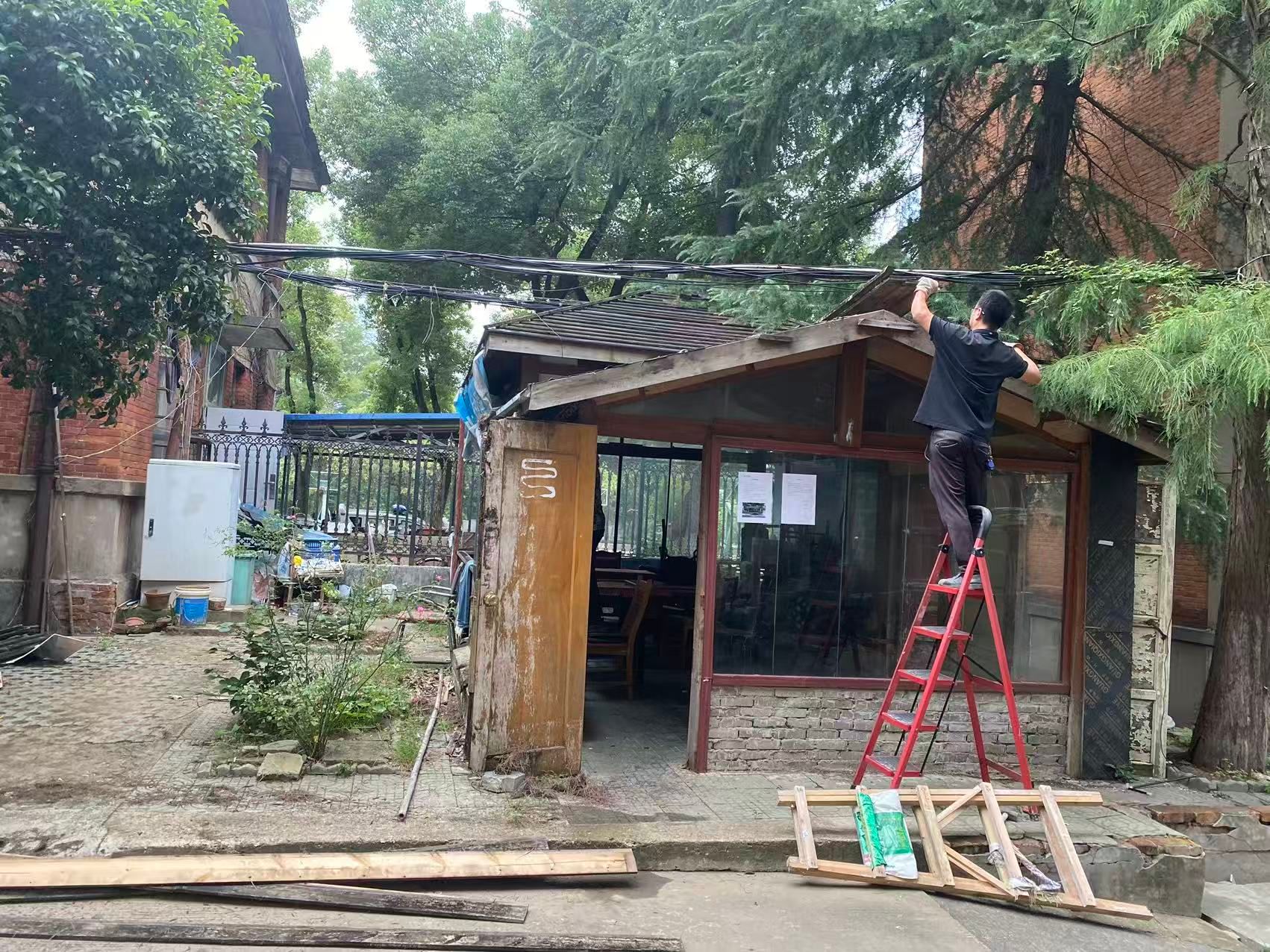 9 月 19 日上午 9 时许,在前期充分准备与多方协调下,洪山后勤服务中心组织人员对占压燃气管道的搭建房进行拆除作业。拆除过程中,工作人员严格遵循安全规范,全程有序操作,确保拆除工作顺利完成,成功消除了燃气管道安全隐患,为校区燃气安全运行提供了坚实保障。