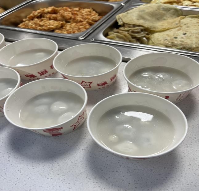 “同学,元宵节快乐!来,吃碗汤圆,新学期团团圆圆!”食堂阿姨们笑脸盈盈,将一份份煮好的汤圆递到同学们手中。老师们也在早餐时刻来到食堂,接过这一份暖心的节日礼物,脸上洋溢着惊喜与感动。
