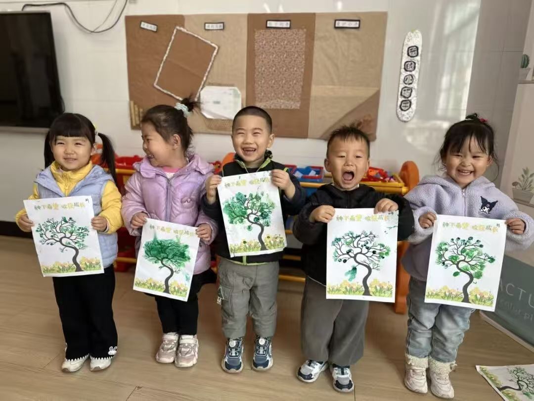 活动中,黄家湖园、青山园的孩子们以班级为单位,用创意与行动践行绿色理念:小班幼儿用小手描绘“小手指栽大树”,在艺术创作中感受树木生长的美好;中班幼儿走进自然,开展“摇钱花生,好事发生”户外实践、“树皮拓印”自然美育等活动,近距离触摸自然肌理;大班幼儿则通过“‘植’属于你,绿意风铃”“我和小树一起成长”等主题活动,亲手参与种植、养护,在劳动中体会生命成长的意义。