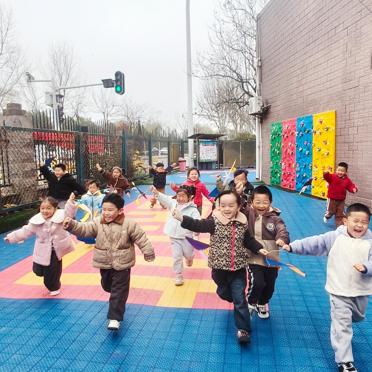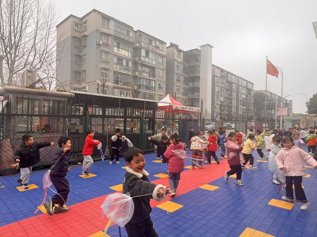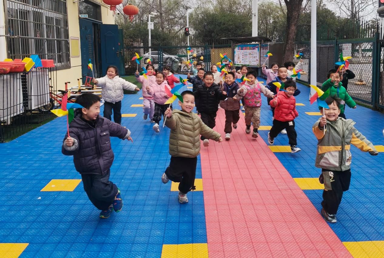活动中,孩子们化身春日小使者,在轻快的《春分》律动中活力起舞,手持飞盘奔跑跳跃,让色彩在春风中飞舞;亲手制作的纸鸢、创意塑料袋风筝迎风而起,承载着童真飞向蓝天;五彩大风车随风转动,转出春日的美好与希望。孩子们在玩中学、乐中悟,沉浸式感受春分节气的诗意与美好,让传统节气文化在童真中焕发生机。