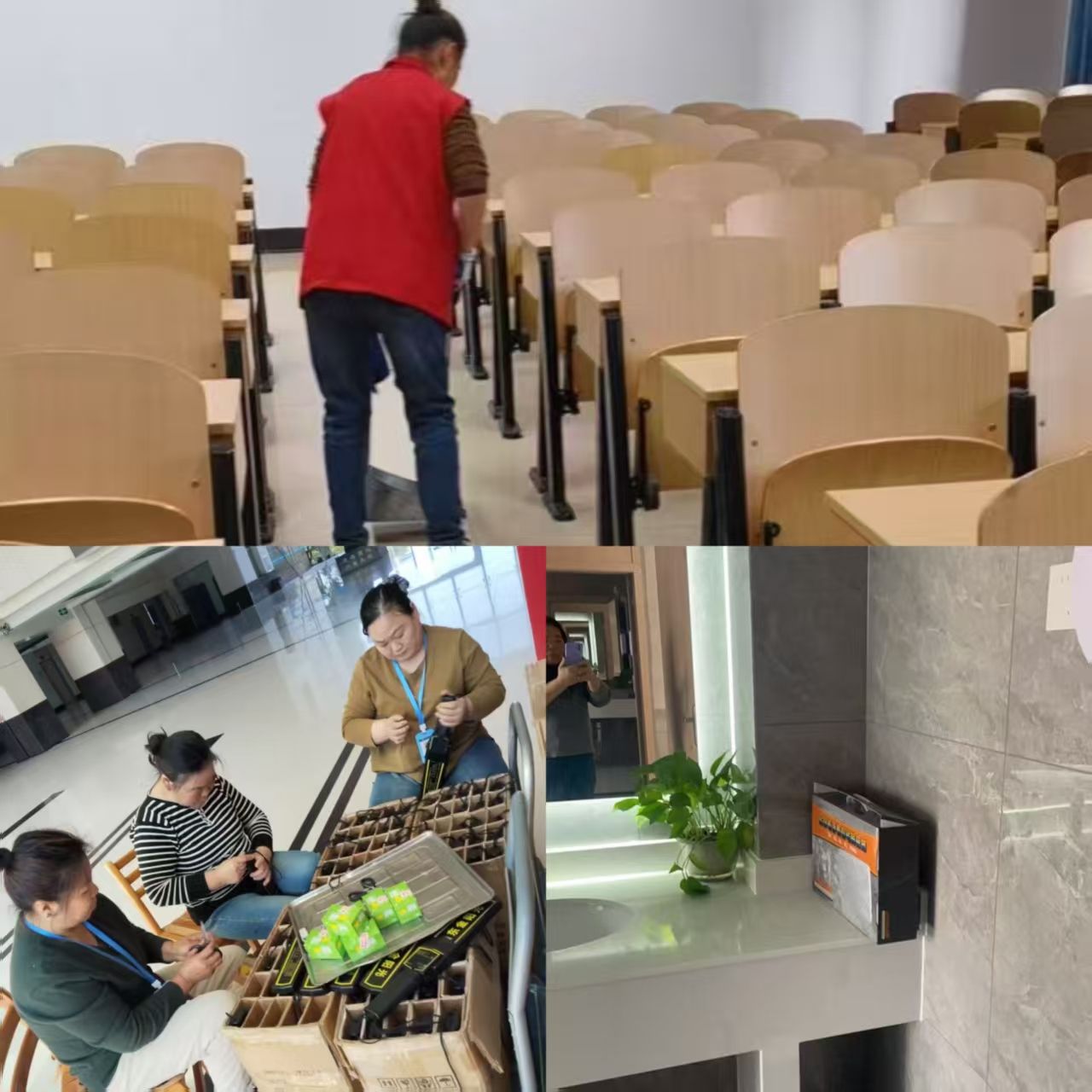 针对考试场次多、参考人数多的特点,中心提前谋划,加大考场周边、校园公共区域的保洁力度,对教学楼内公共区域进行深度清洁。同时,考试完后及时清理公共区域的环境卫生,确保校园整体环境干净整洁、清新舒适。