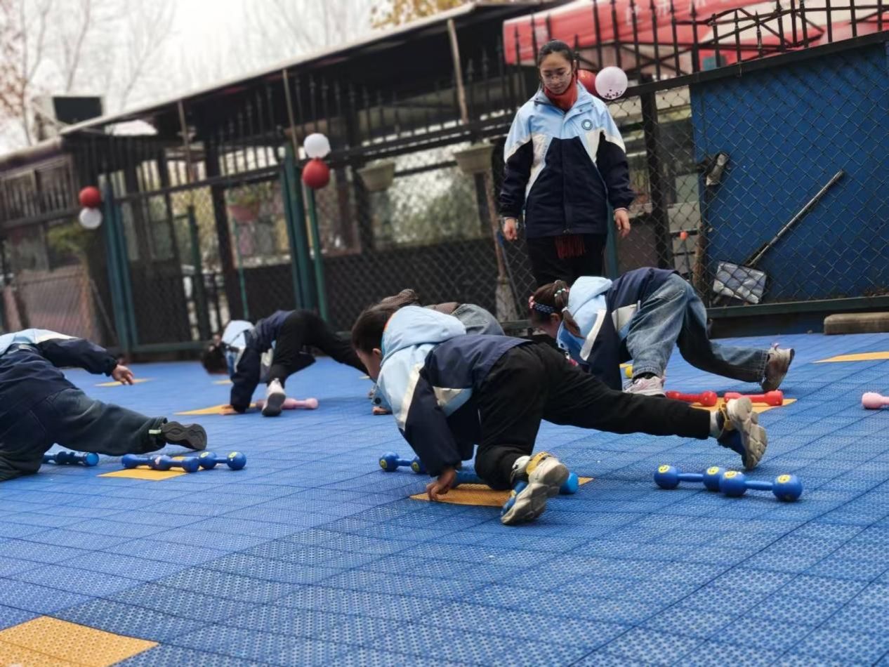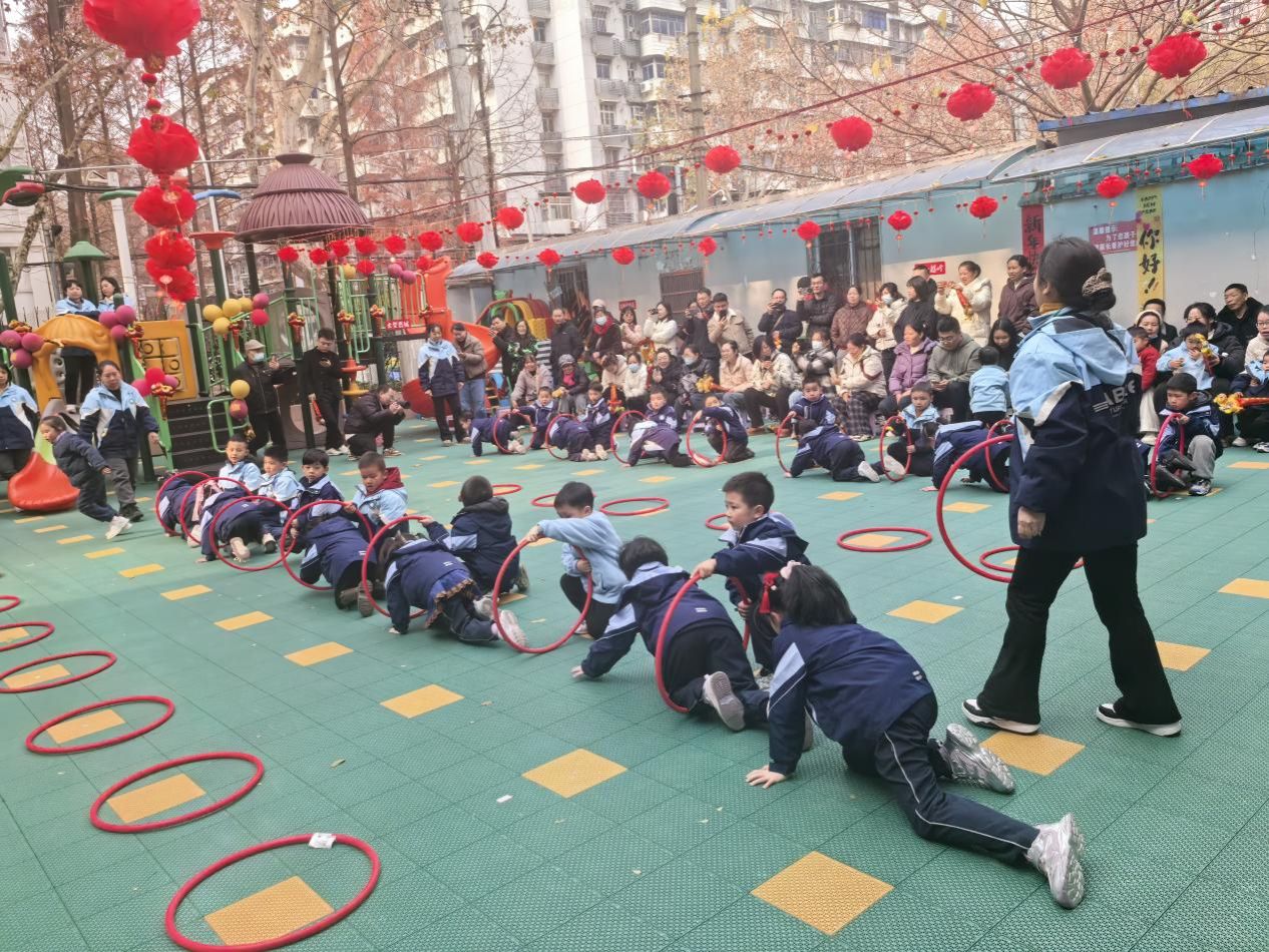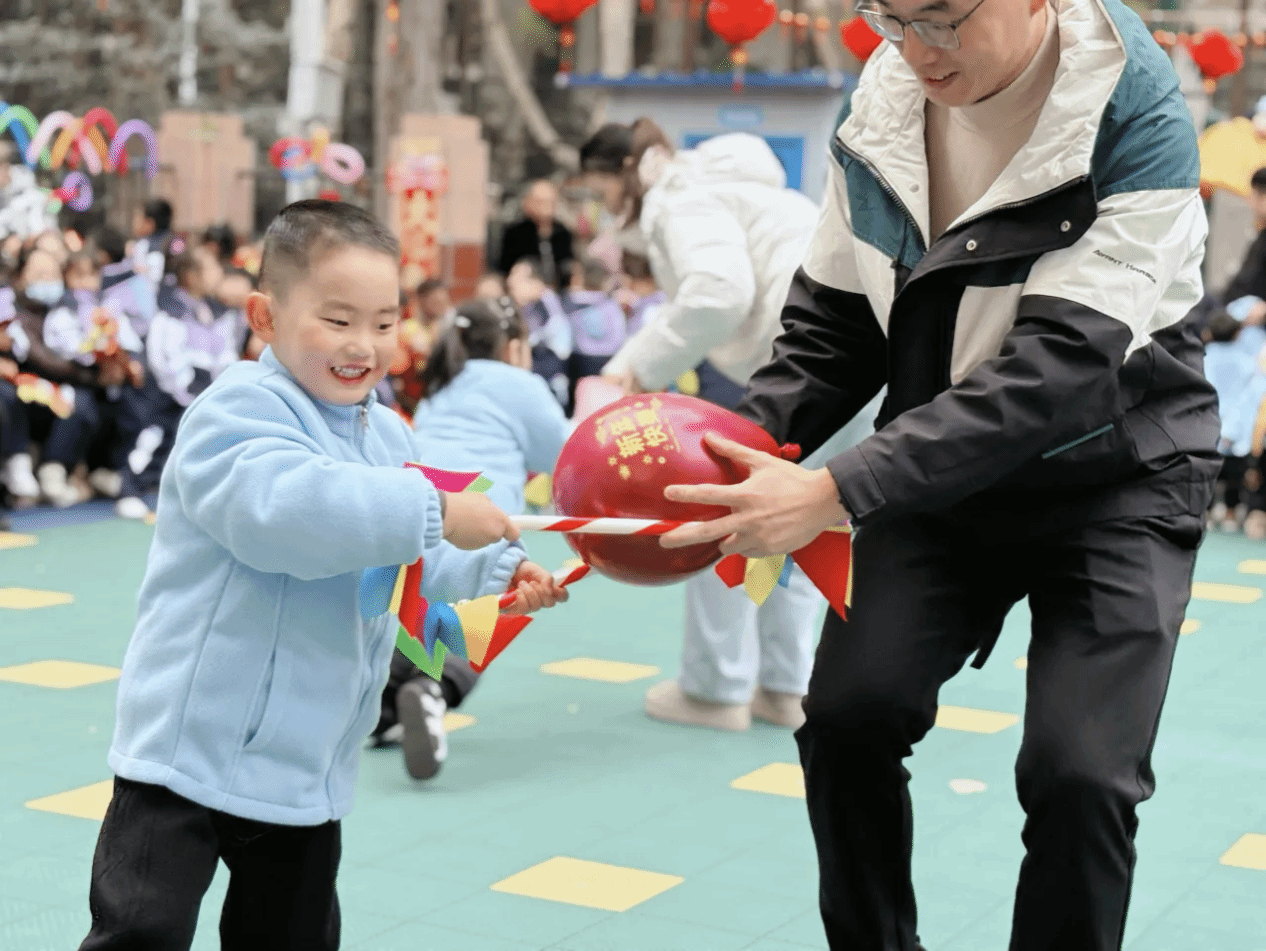青山园举办“童心跃动 活力飞扬”大型器械操展演,各班级依次带来《阳光体操棒》《铃儿响叮当》等特色器械操表演,孩子们动作整齐、自信昂扬,赢得阵阵掌声;展演间隙穿插竹竿接力、亲子夹物等趣味亲子游戏,家园默契互动,暖意浓浓。